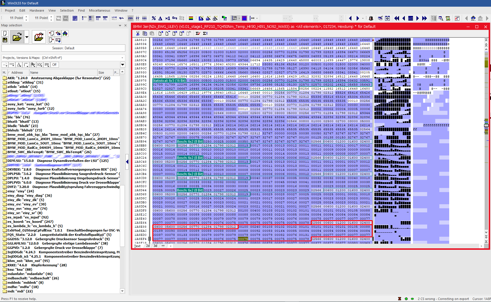 Below you can take a look on few screens of re-mapped firmware in WinOLS: (for engine - N20B20A, ECU - MEVD17.2.P)